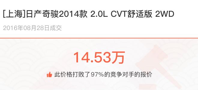下面一起来看下开了不同公里数的日产奇骏在二手车拍卖平台上卖了多少钱: