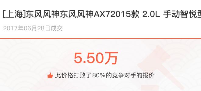 下面一起来看下开了不同公里数的东风风神东风风神AX7在二手车拍卖平台上卖了多少钱: