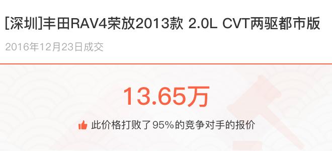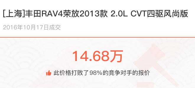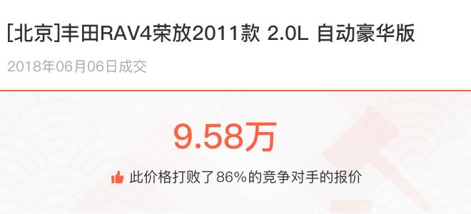 下面一起来看下开了不同公里数的丰田RAV4荣放在二手车拍卖平台上卖了多少钱: