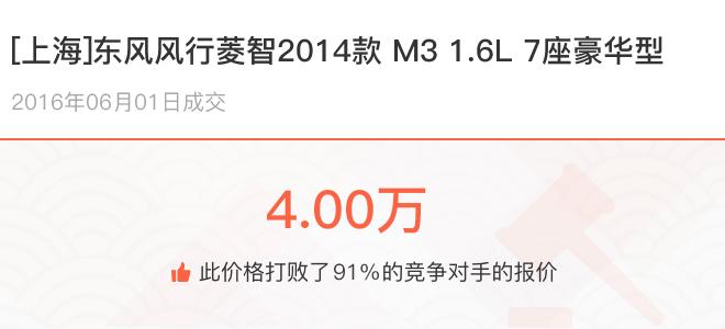 下面一起来看下开了不同公里数的东风风行菱智在二手车拍卖平台上卖了多少钱: