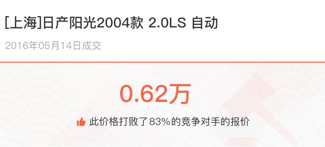 下面一起来看下开了不同公里数的日产阳光在二手车拍卖平台上卖了多少钱:
