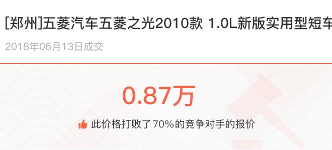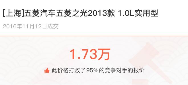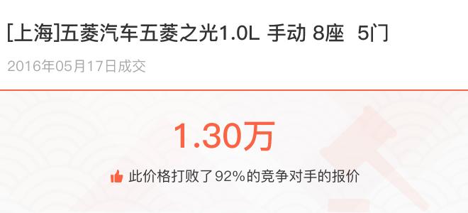 下面一起来看下开了不同公里数的五菱汽车五菱之光在二手车拍卖平台上卖了多少钱: