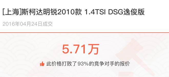 下面一起来看下开了不同公里数的斯柯达明锐在二手车拍卖平台上卖了多少钱: