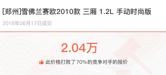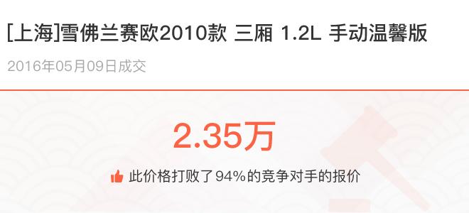 下面一起来看下开了不同公里数的雪佛兰赛欧在二手车拍卖平台上卖了多少钱: