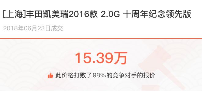 下面一起来看下开了不同公里数的丰田凯美瑞在二手车拍卖平台上卖了多少钱: