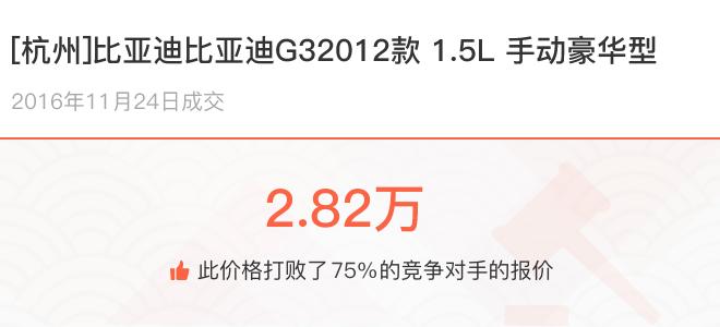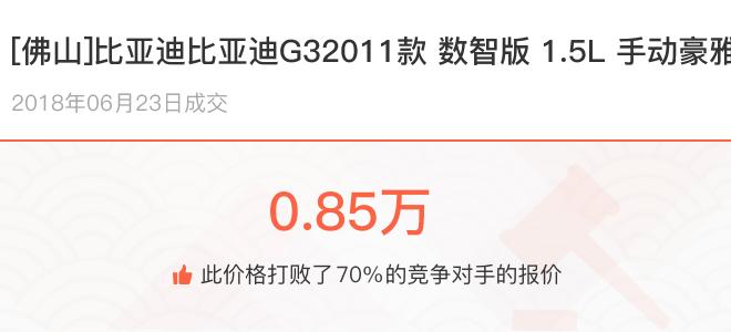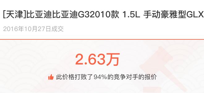 下面一起来看下开了不同公里数的比亚迪比亚迪G3在二手车拍卖平台上卖了多少钱: