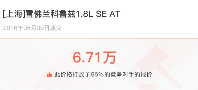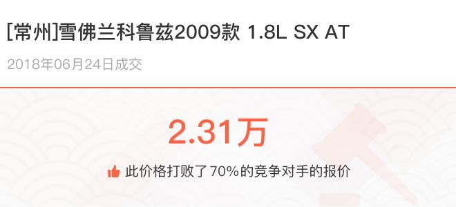 下面一起来看下开了不同公里数的雪佛兰科鲁兹在二手车拍卖平台上卖了多少钱:
