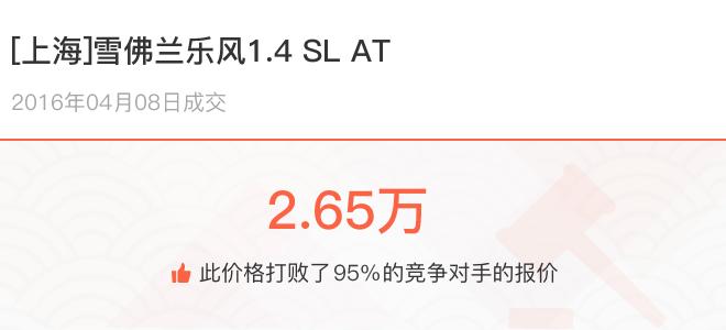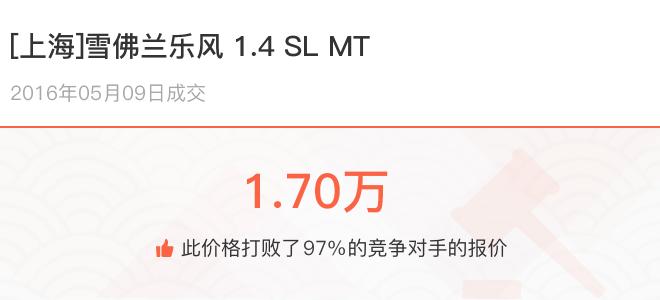 下面一起来看下开了不同公里数的雪佛兰乐风在二手车拍卖平台上卖了多少钱: