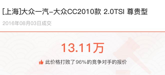 这辆开了2年的大众一汽-大众CC卖了这么多钱: