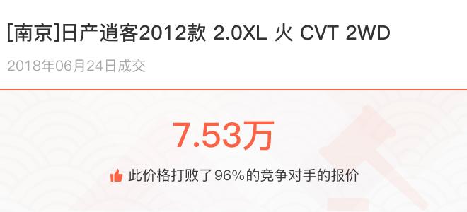一辆开了6年5.2万公里的二手车还值多少钱?南京车主看到朋友换了辆新车,也想把自己的日产逍客卖掉换辆新的,却不知道这辆行驶了5.2万公里的旧车到底还能卖多少钱?下面一起来看下开了不同公里数的日产逍客在二手车拍卖平台上卖了多少钱: