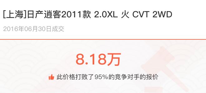 下面一起来看下开了不同公里数的日产逍客在二手车拍卖平台上卖了多少钱: