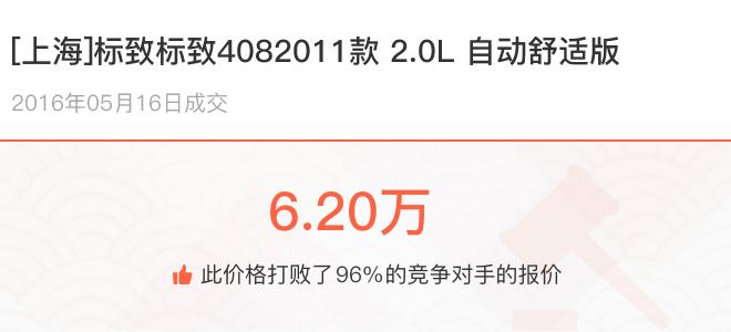 下面一起来看下开了不同公里数的标致标致408在二手车拍卖平台上卖了多少钱:
