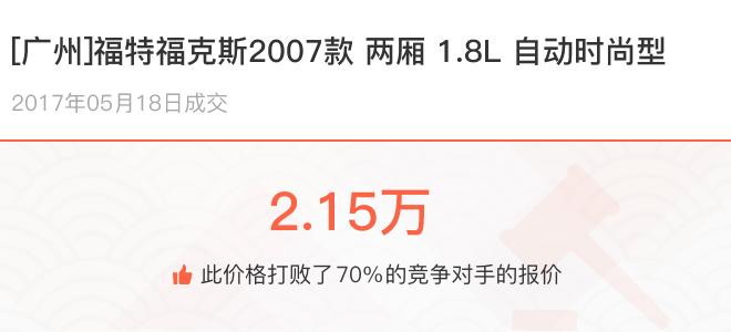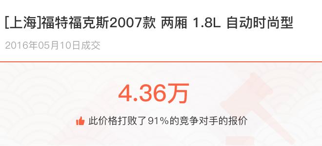 下面一起来看下开了不同公里数的福特福克斯在二手车拍卖平台上卖了多少钱: