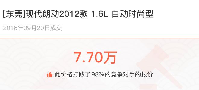下面一起来看下开了不同公里数的现代朗动在二手车拍卖平台上卖了多少钱: